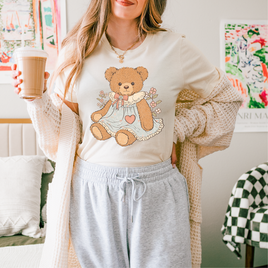 Vintage Girl Bear Clear Film Screen Print