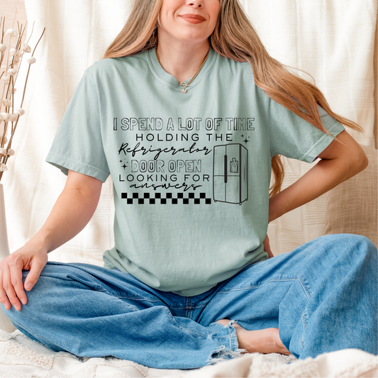 Holding the Refrigerator Door Open Looking for Answers Screen Print
