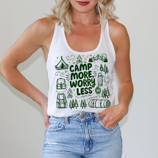 Camp More Worry Less HUNTER GREEN INK Screen Print