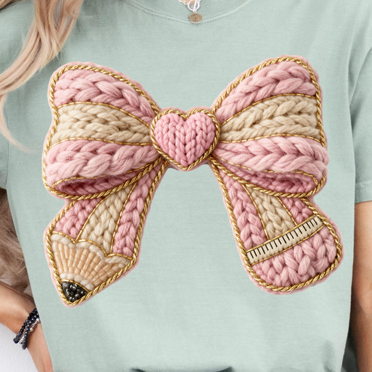 Faux Yarn Pencil Bow DTF Transfer
