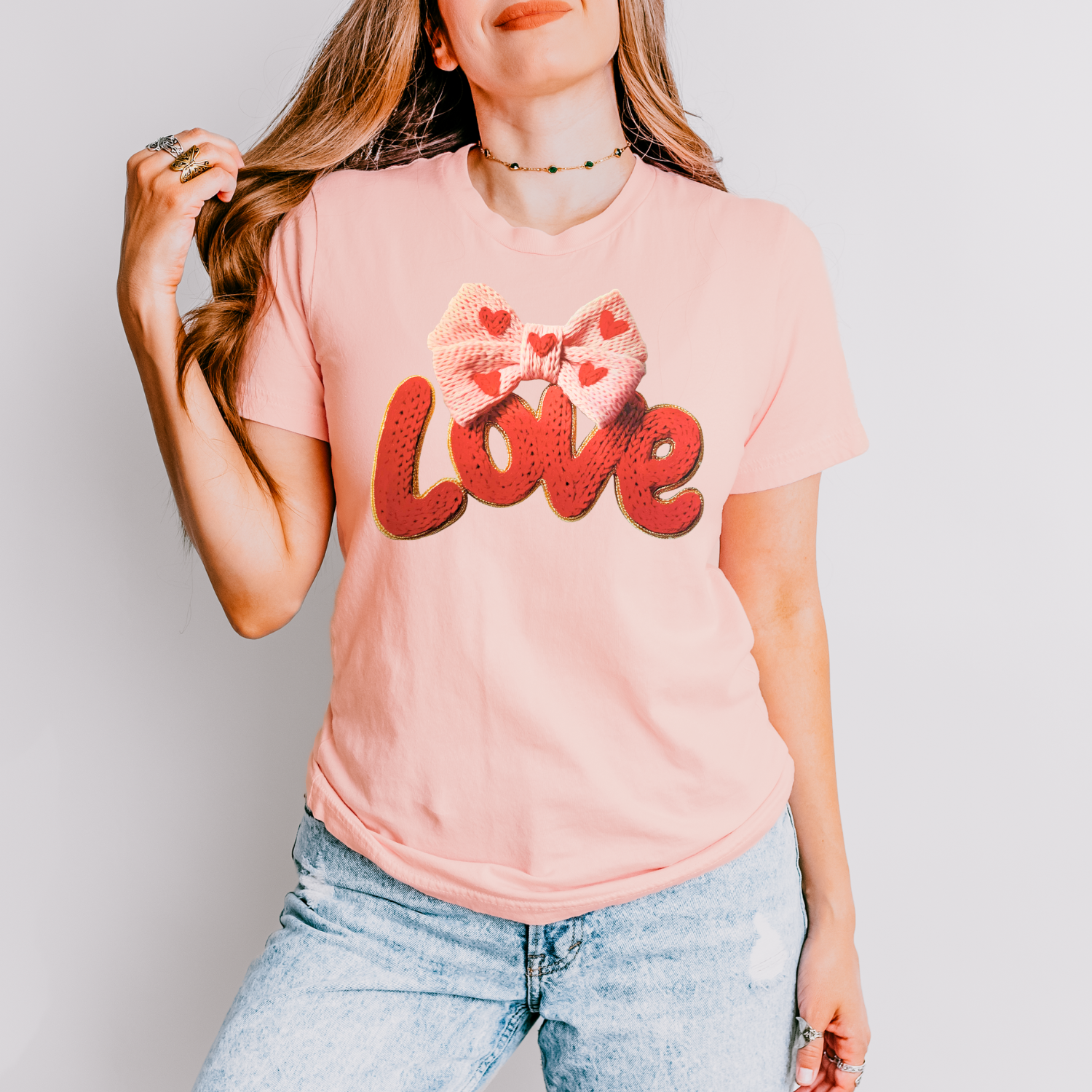 Faux Yarn Love with Bow DTF Transfer