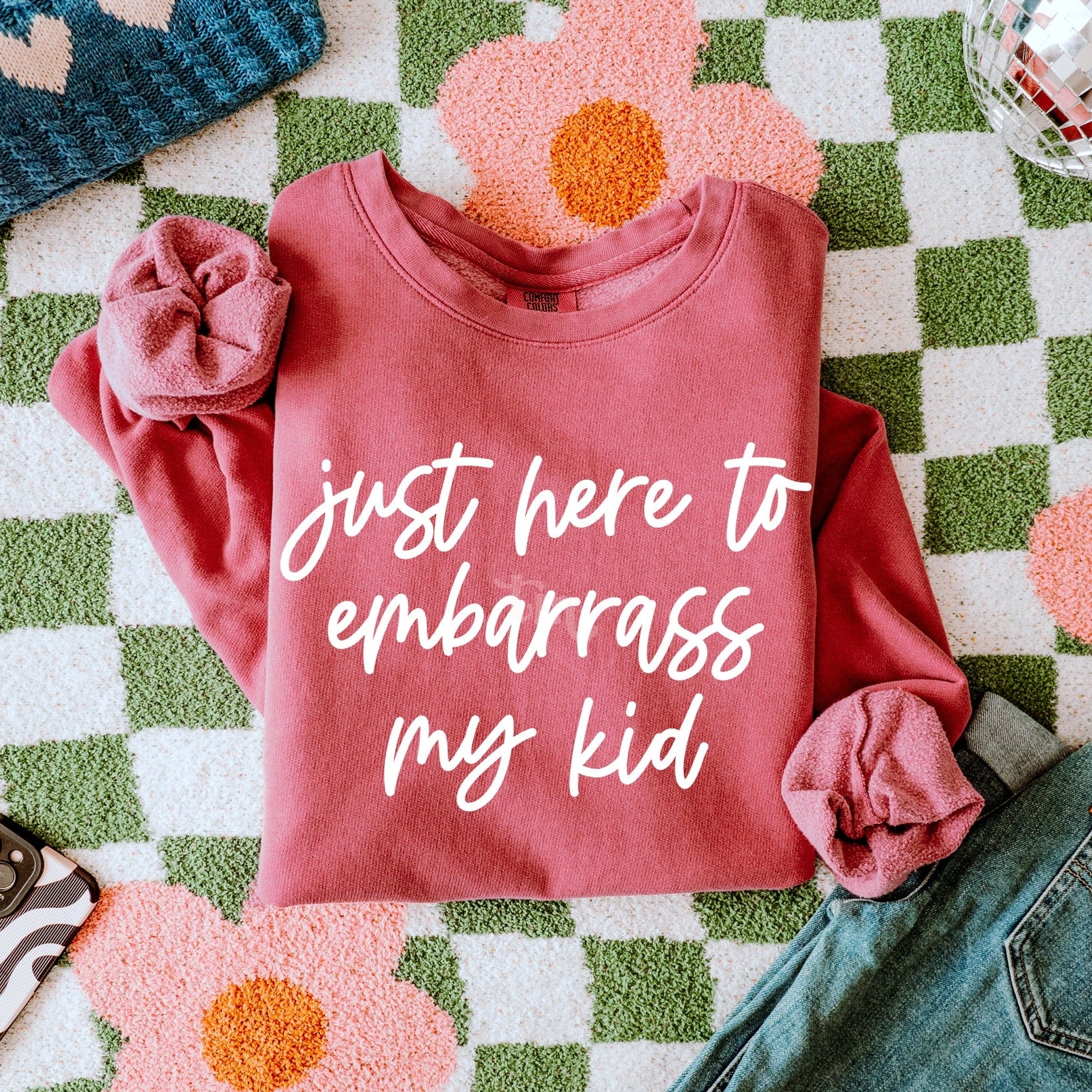 Just Here to Embarrass my Kid WHITE INK Screen Print