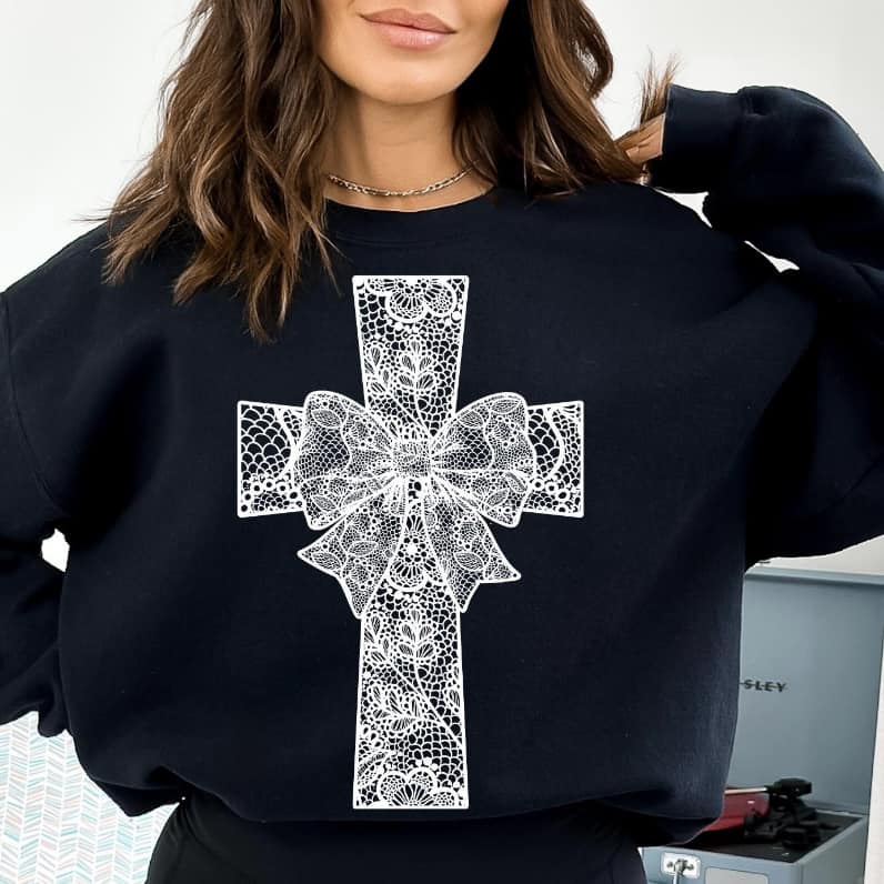 Lace Cross WHITE INK Screen Print