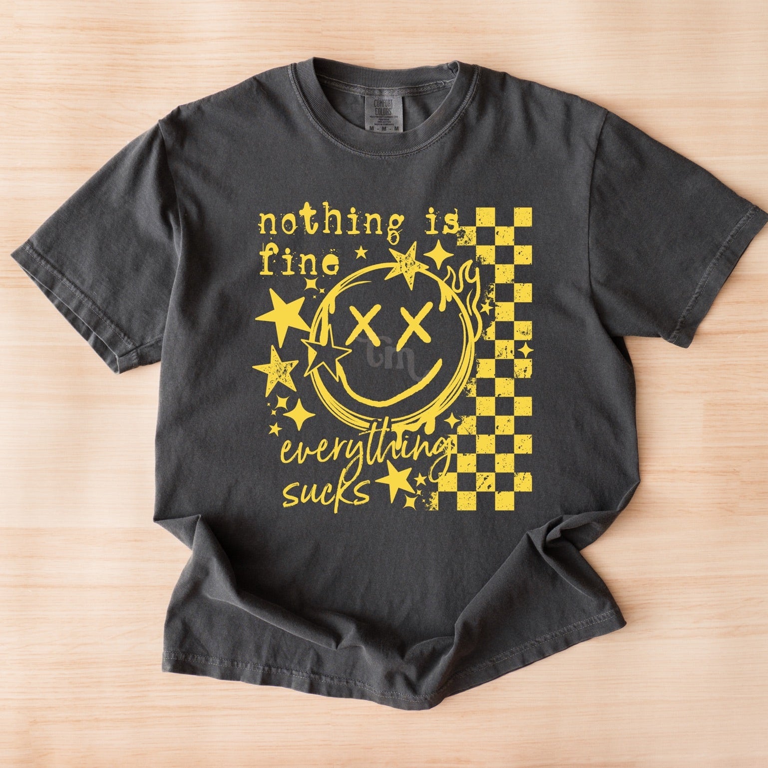 Nothing is Fine Everything Sucks YELLOW INK Screen Print