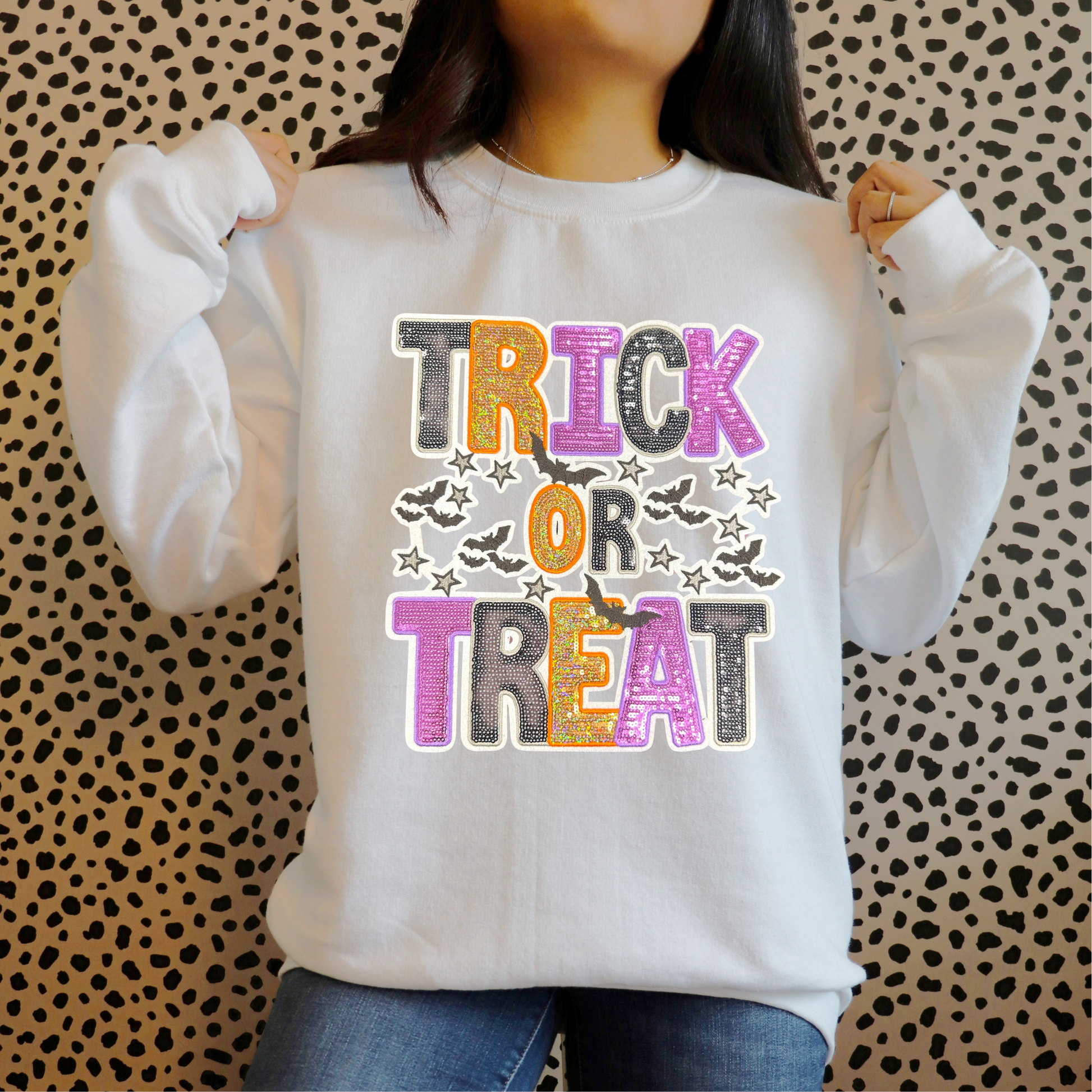 Celebrate Halloween in style with the Sequin Trick or Treat Patch Graphic Tee. Featuring a sparkling sequin patch that captures the fun of trick-or-treating, this tee brings playful shine and festive energy to your wardrobe. Soft and comfy, it’s perfect for showing off your Halloween spirit with a touch of sparkle.